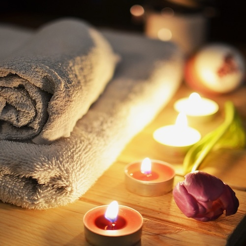 Meleg, biztonságos tér megteremtése (gyertyák, füstölő, halk zene)